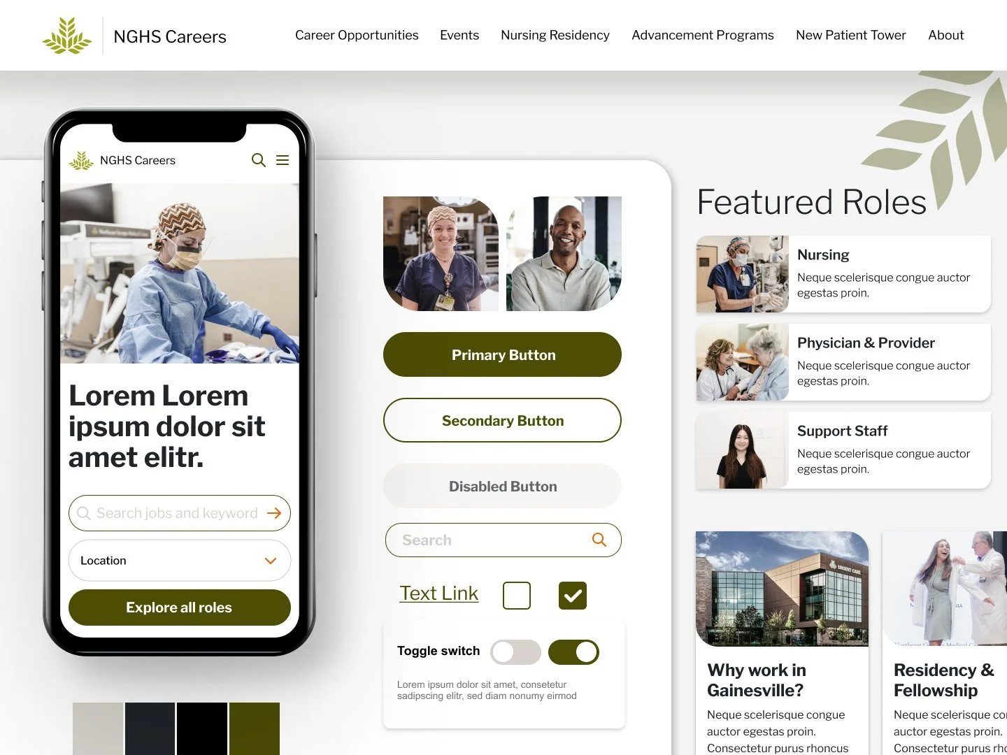 The redesigned NGHS Careers site delivered a visually striking, user-friendly experience that differentiated the health system in a competitive hiring landscape. By balancing strategic UX updates with a bold UI refresh, we created a platform that both engaged job seekers and reinforced NGHS’s employer brand.