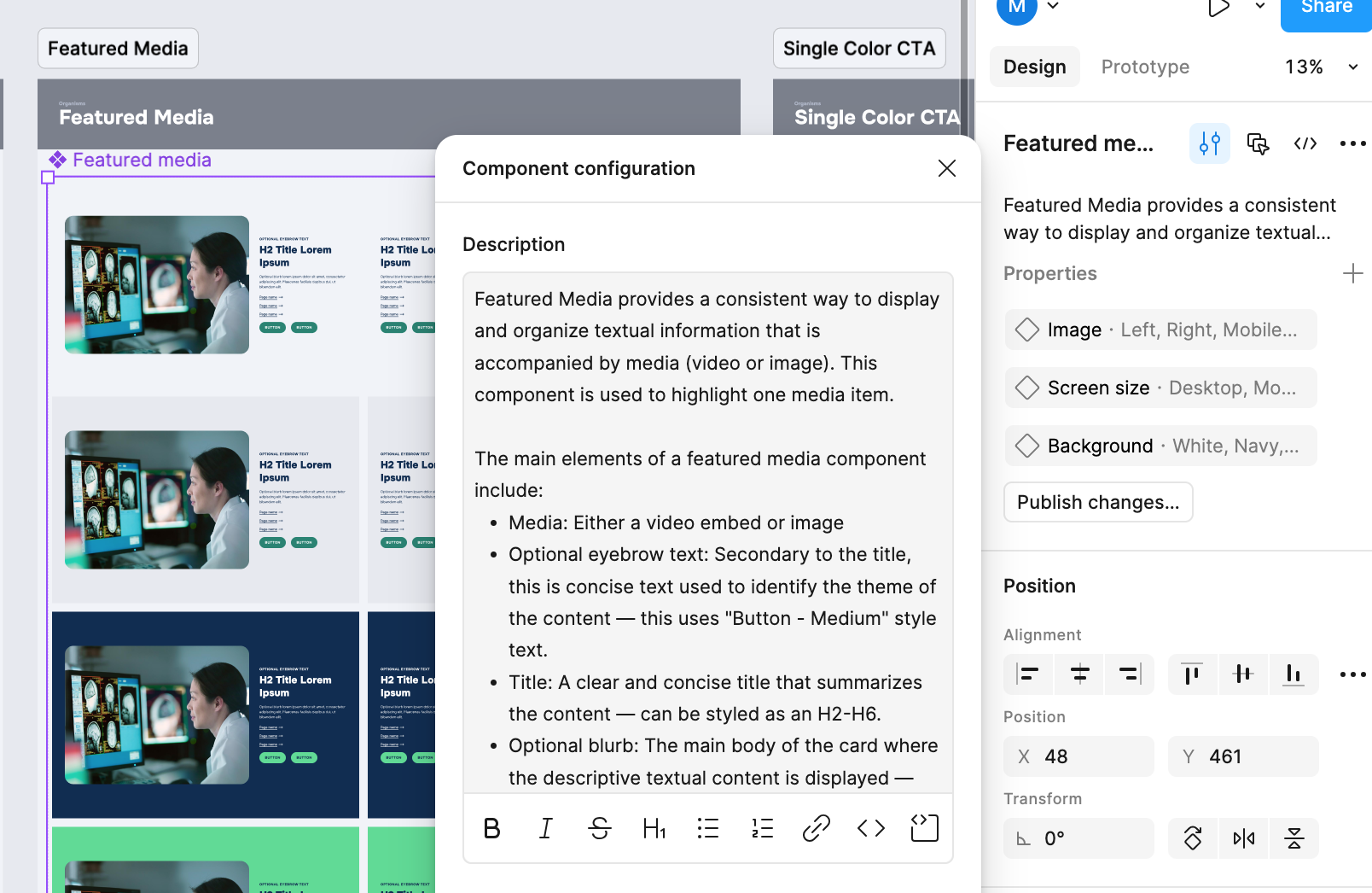 Throughout the agile design and development process, my team worked iteratively on a robust design system for the WMC Health website. We first set up developers with basic styles and variables, then created atoms, molecules, organisms, and corresponding page templates to support numerous page types. Each component contained detailed design requirements and documentation to preemptively answer questions that front-end developers might have and set them up for success.
