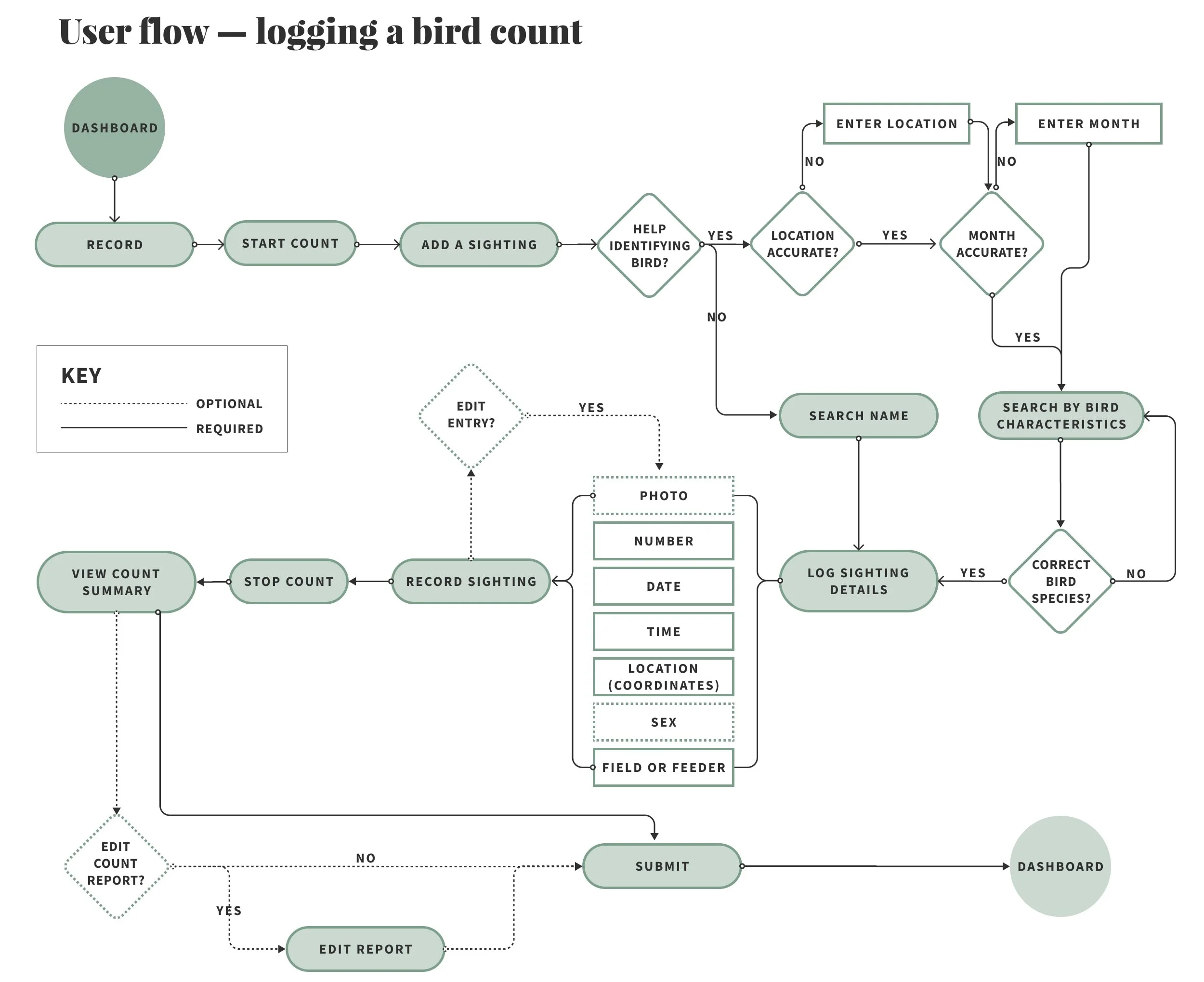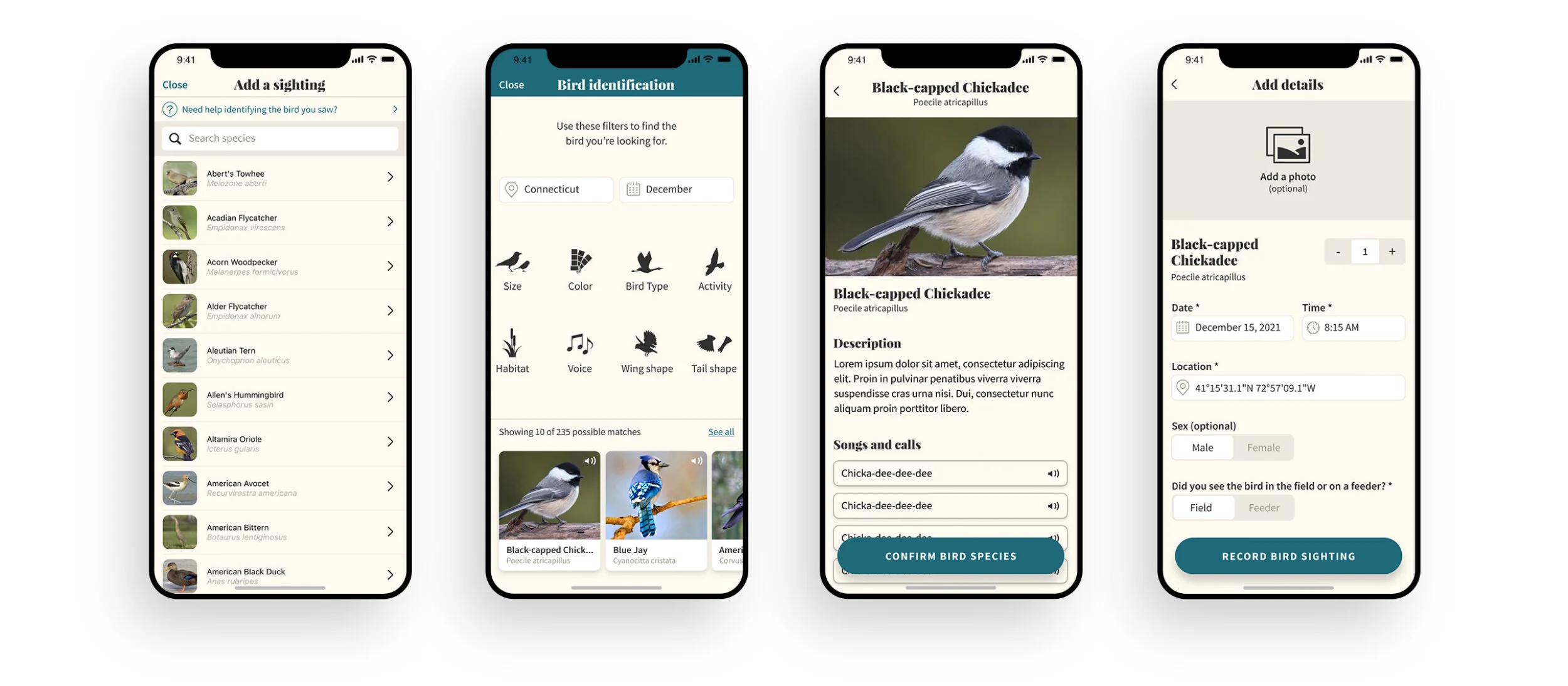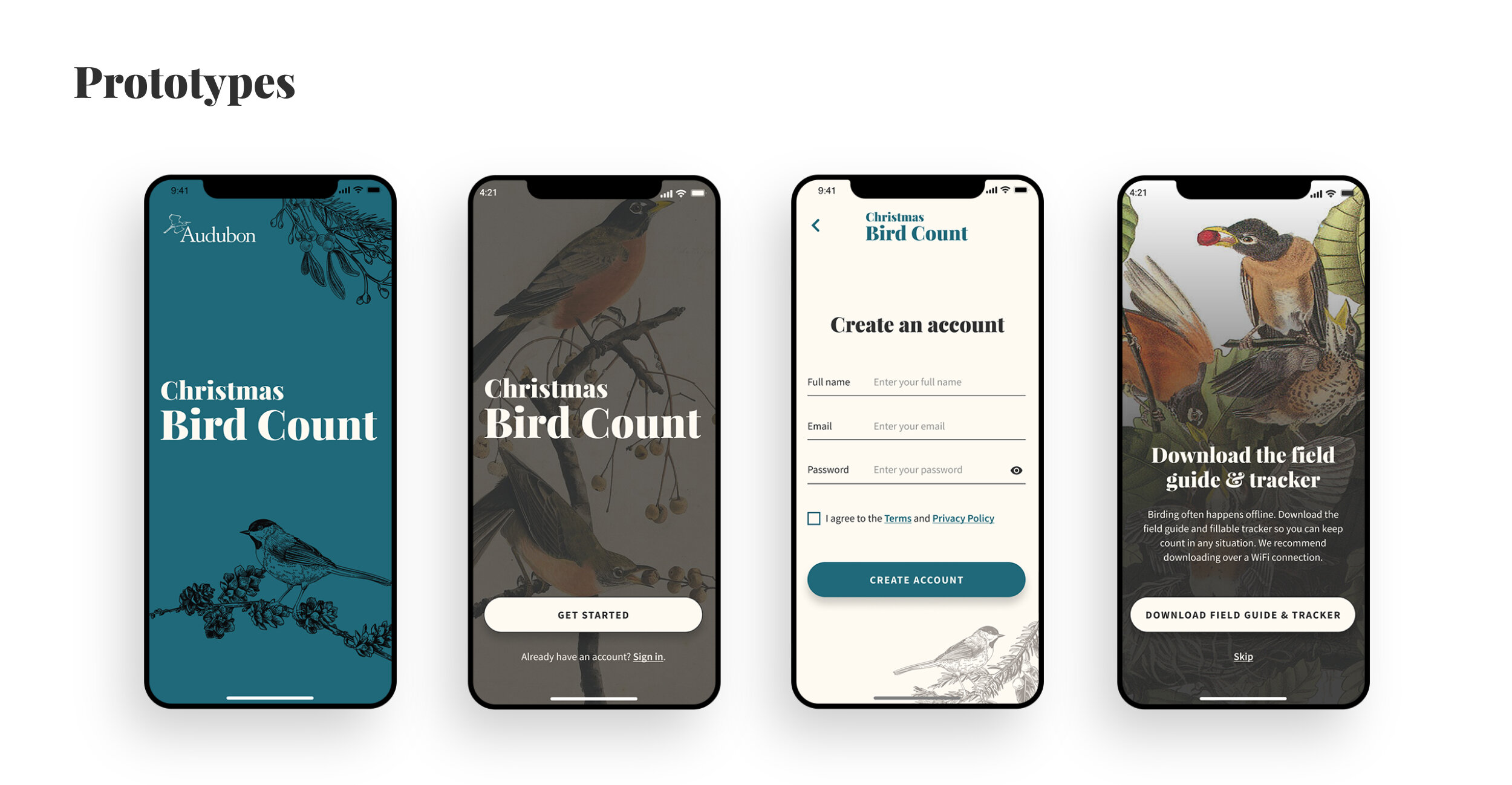 Design for a companion app for the Audubon society’s annual Christmas Bird Count.